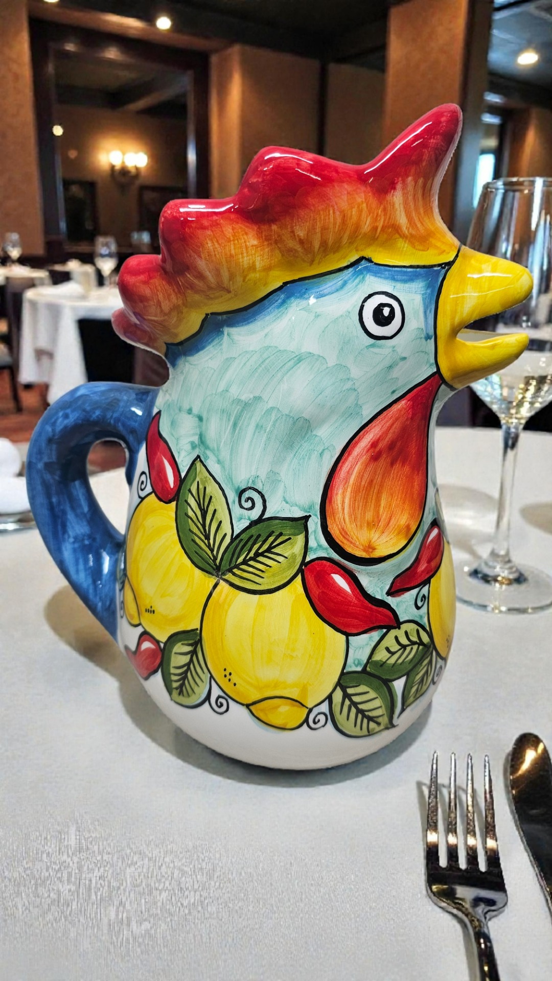 Brocca decorata a mano, secondo la tradizione, da artisti ceramisti autori del MADE IN ITALY .