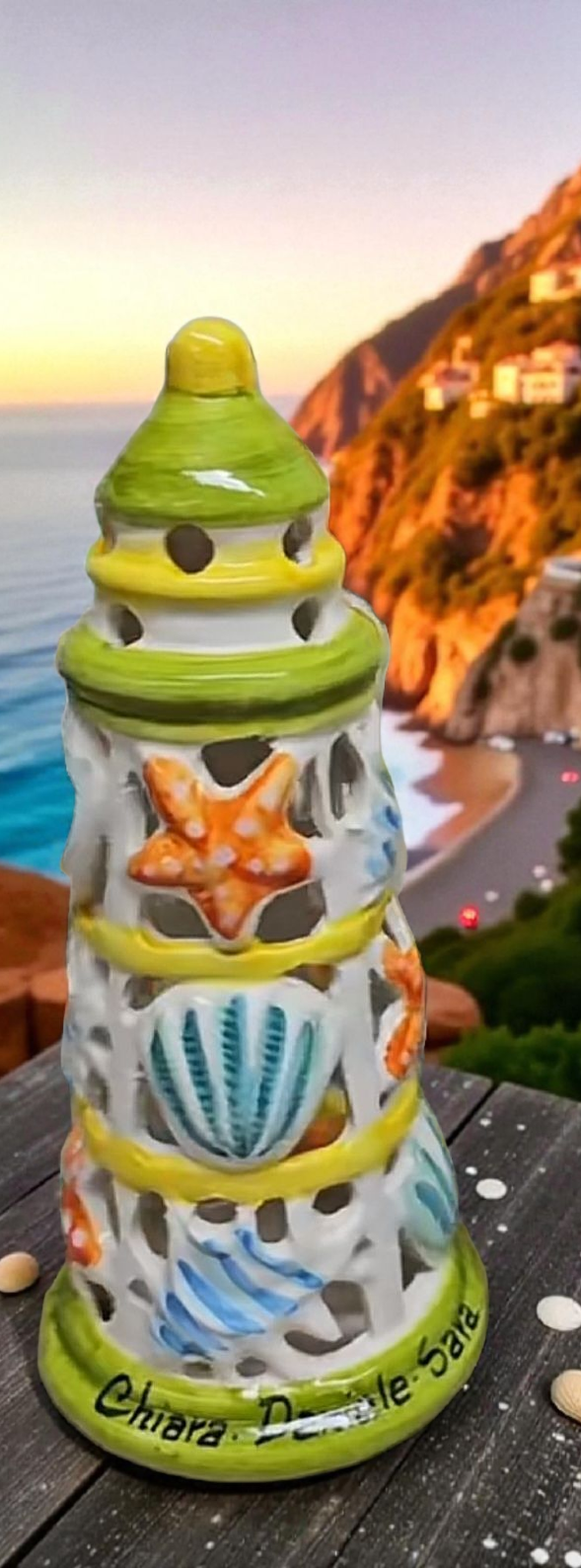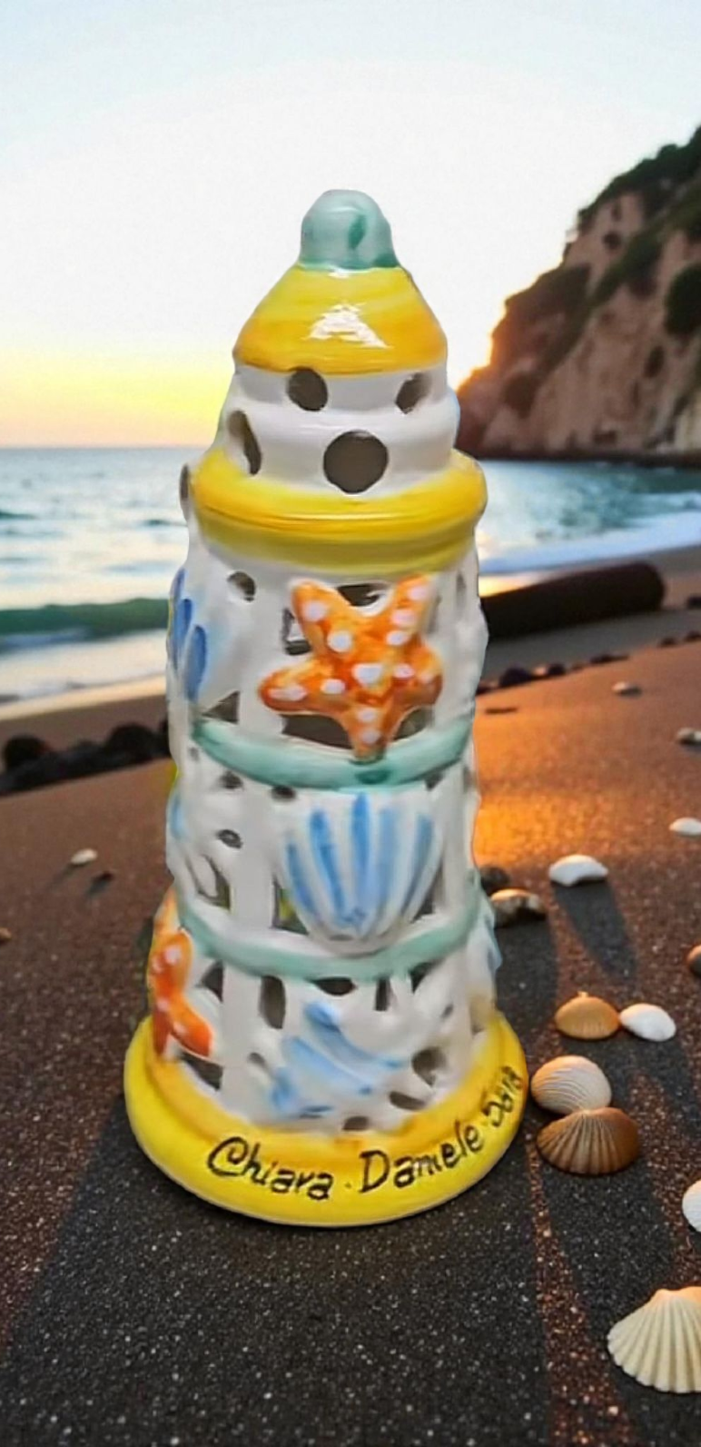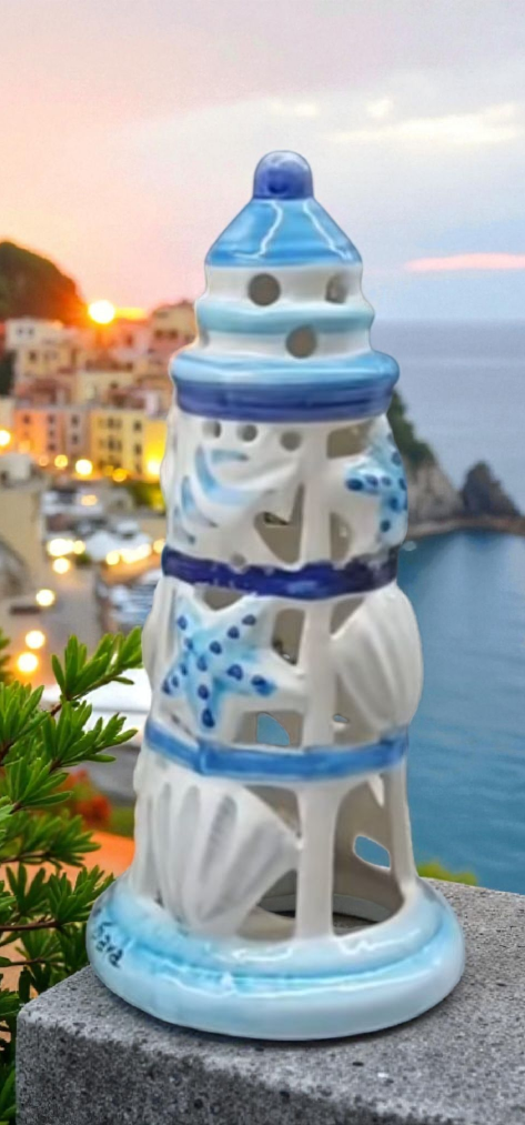 Faro in Ceramica con Traforo e LED – Artigianato Made in Italy