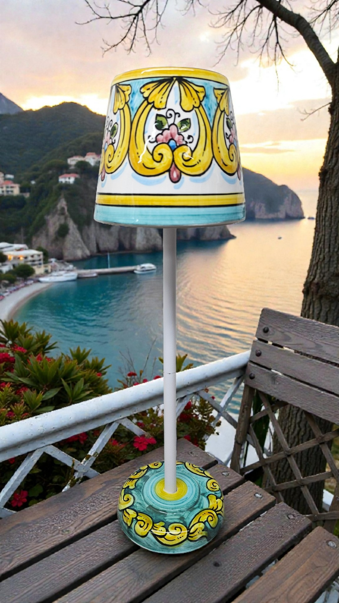 Lampada in Ceramica Decorata a Mano con Luce LED e Batterie Incluse