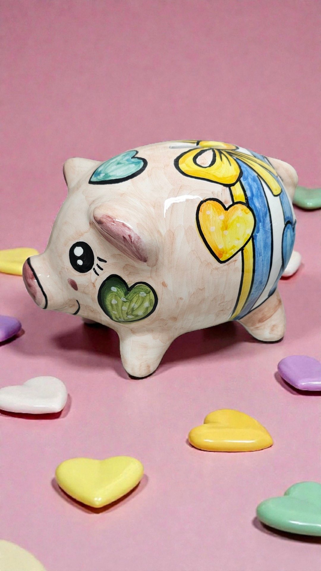 Salvadanaio 17 cm decorato a mano, secondo la tradizione, da artisti ceramisti autori del MADE IN ITALY.