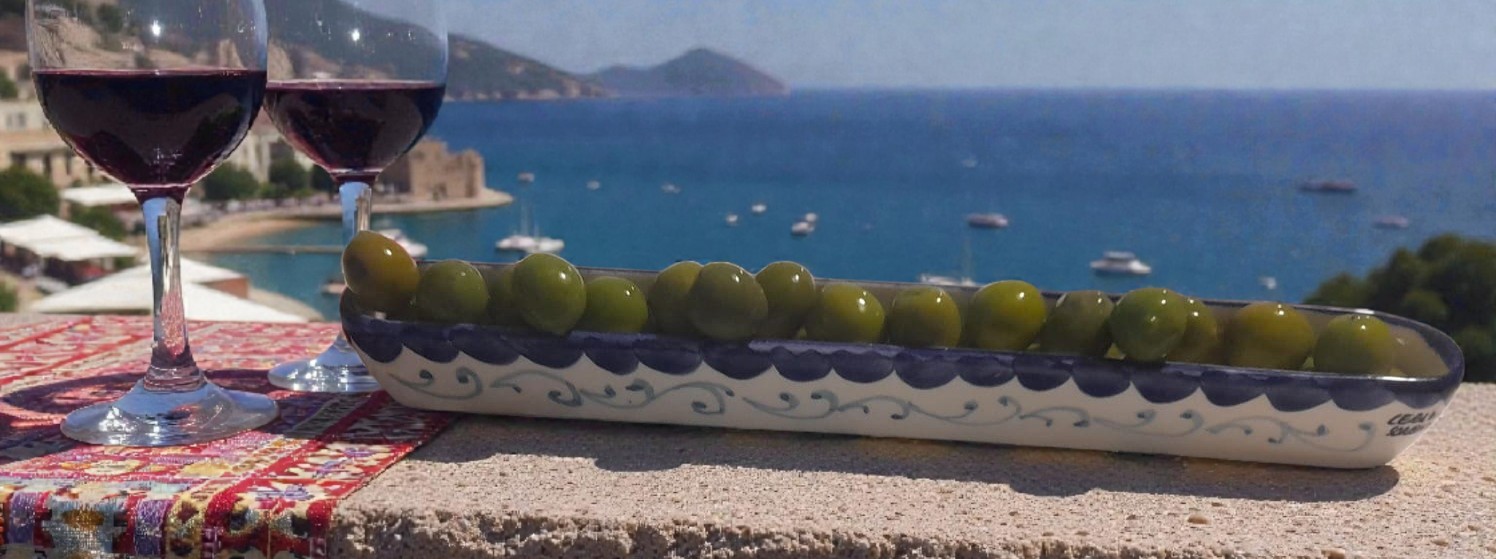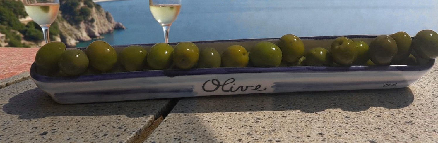 Slim Hand-Painted Artisan Ceramic Olive Holder – Made in Italy – Coastal Style